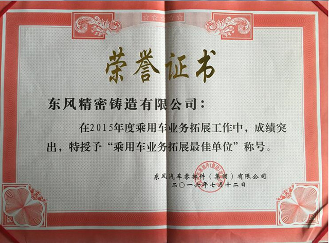7月16日,東風(fēng)零部件集團(tuán)公司召開營(yíng)銷系統(tǒng)工作會(huì),并對(duì)“十二五”期間市場(chǎng)結(jié)構(gòu)轉(zhuǎn)型突出的單位進(jìn)行表彰,東風(fēng)精鑄榮獲乘用車業(yè)務(wù)拓展最佳單位。