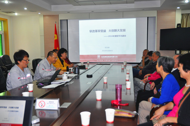 下午230,在310會議室召開離退休員工溝通會,公司總經理杜孔明、黨委書記孫長虹、離退休工作站主任歐翠芬及19位離退休員工代表與會。會上,首先聽取杜總做精鑄公司生產經營情況通報,隨后與會人員就離退休系統管理工作、社區管理及精鑄公司發展等提出意見和建議。